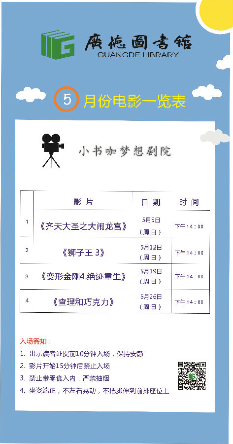 5月,图书馆里约场电影吧!