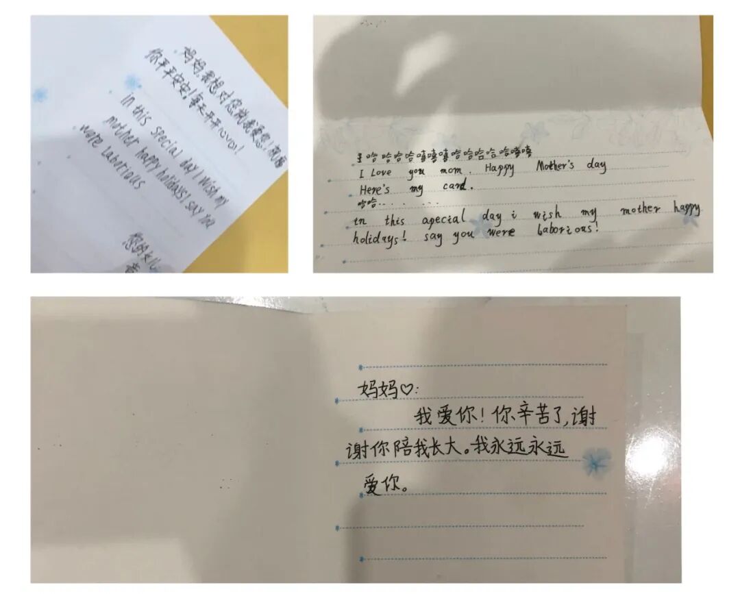 绘本故事结束后,夏姐姐还同小朋友们一起制作了精美的贺卡,写上想对妈妈说的话一起送给妈妈,并大声地说出了“妈妈,节日快乐“!在场的妈妈被孩子的行动感动得热泪盈眶。