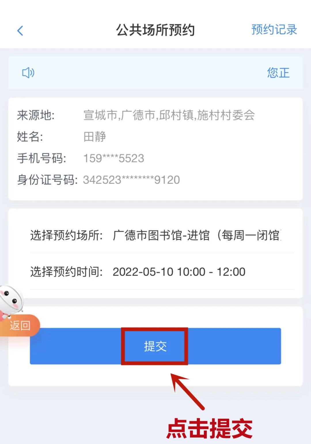 →选择预约时间提交