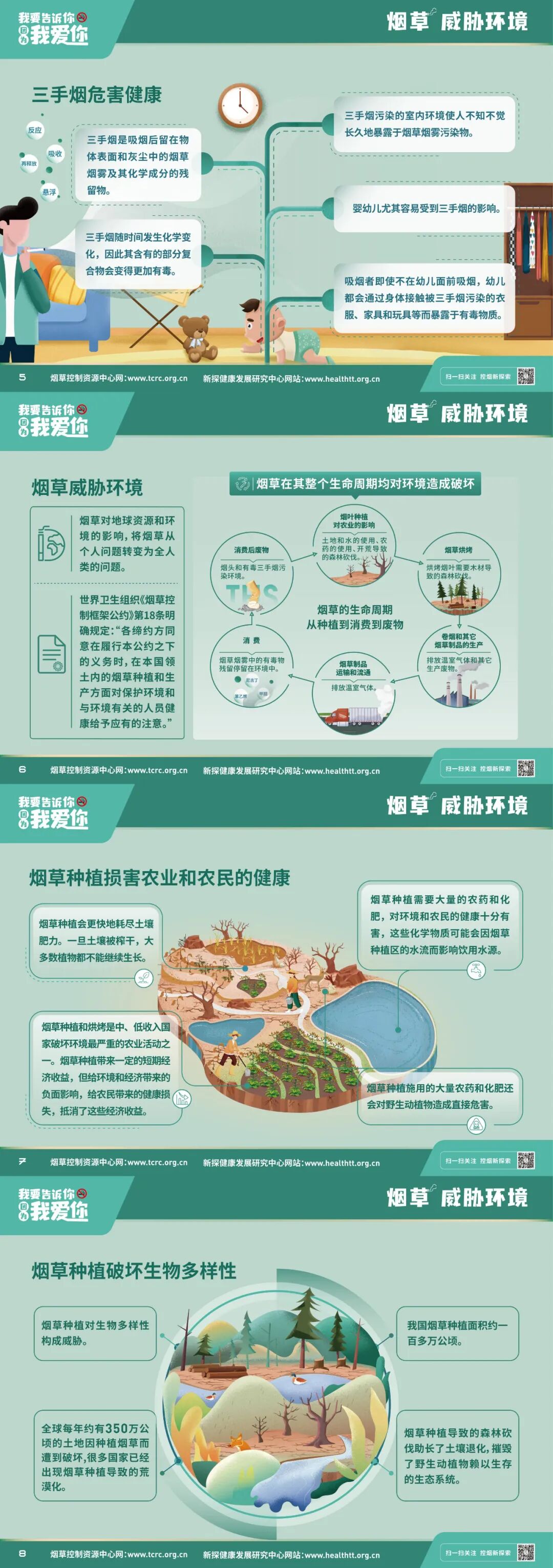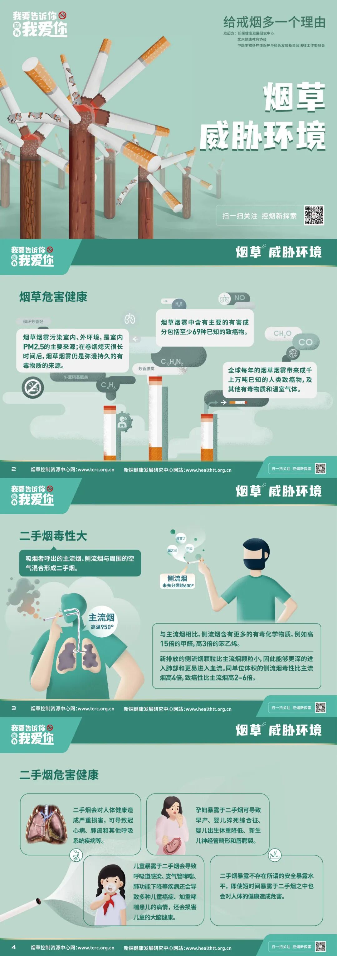 现实生活中,除烟草生产以及消费带来的环境和健康危害以外,吸烟者在室内环境吸烟会带来严重的室内污染,从而危害我们生活的微环境,并由此带来二手烟和三手烟,影响自己、家人和同事的健康。